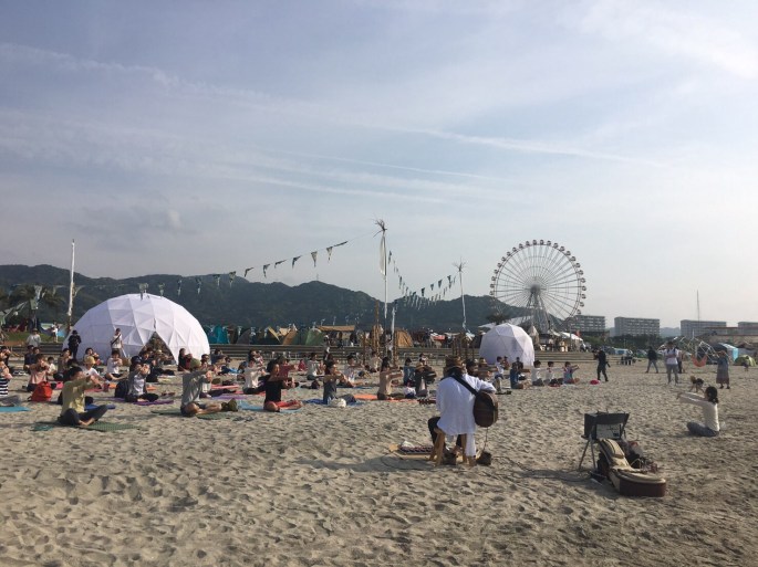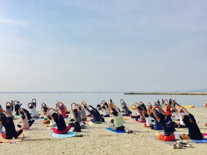 砂浜の上で行いますので、心地よく動けるように、ヨガマットか大きな布をお持ち下さいね。
