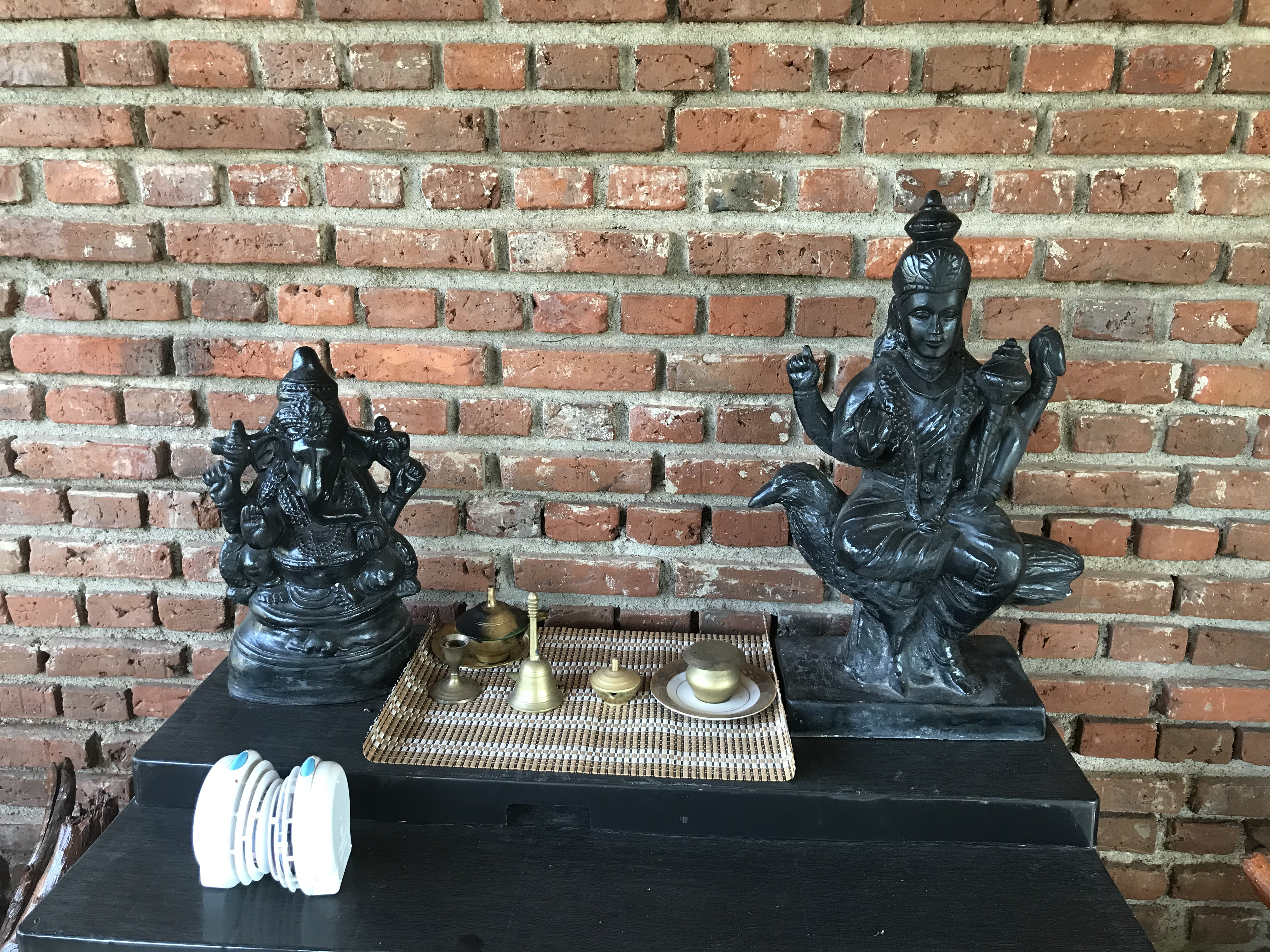 朝、6時よりモーニングヨガスタート。まだ真っ暗な中、ヨガを行う川辺のスペースへ。そこには祭壇があり、仏様とヨガの聖者が祀られています。